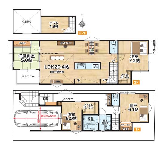 【最終1棟】高円寺&中野エリア・20帖LDK&4部屋&車庫の大型邸宅・吹抜