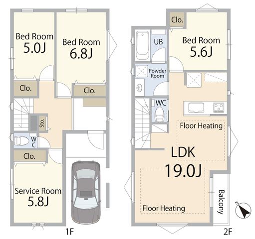 【白山エリア】延床105m2×4部屋×19帖リビング×車庫付・南西向き