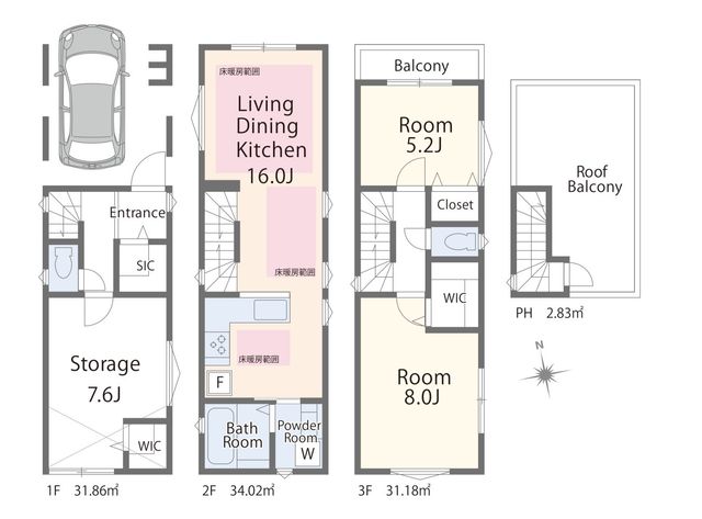【町屋駅6分】16帖LDK×8帖居室×ビルドイン車庫・ルーフバルコニー付き