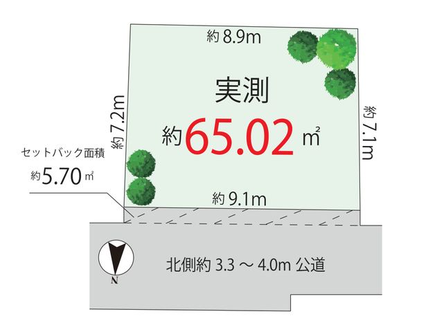 | 現況/引渡し | 更地/相談 | 接道状況 | 接道: 北 公道 道路幅: 3.3m |
