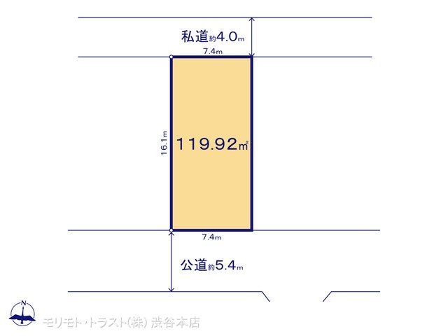 | 現況/引渡し | 更地/相談 | 接道状況 | 接道: 南 公道 道路幅: 5.4m 接道: 北 私道 道路幅: 4m |