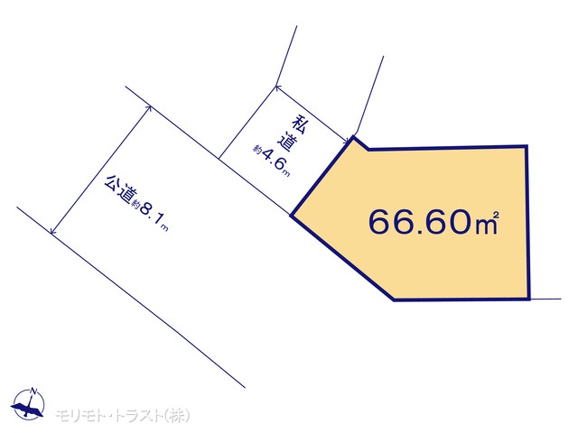 | 現況/引渡し | 更地/相談 | 接道状況 | 接道: 南 公道 道路幅: 8.1m 接道: 西 私道 道路幅: 4.6m |
